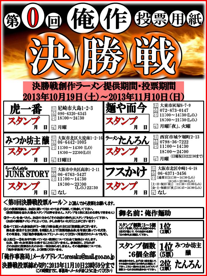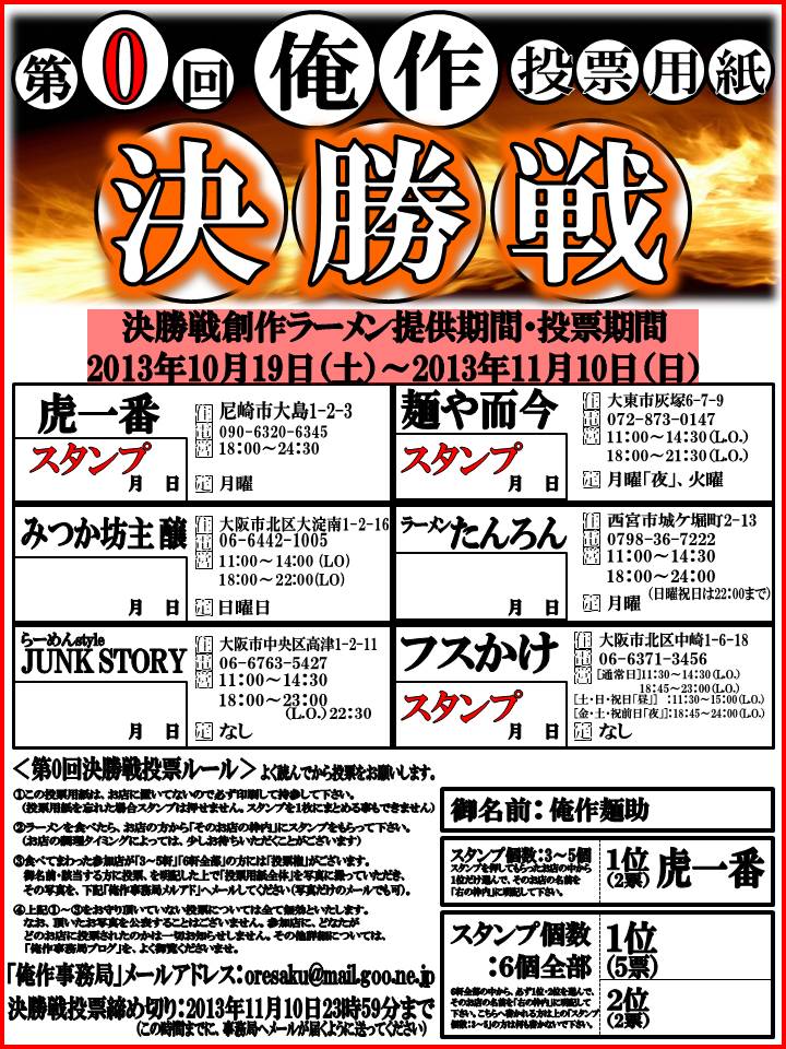 この投票用紙が無くても、各店で創作麺は食べれます。